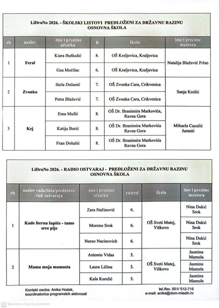 Školski list Kej ove je godine ostvario izniman uspjeh – predložen je za državnu razinu LiDraNa 2026., što predstavlja veliko priznanje za trud, kreativnost i predanost cijelog tima koji stoji iza njega.